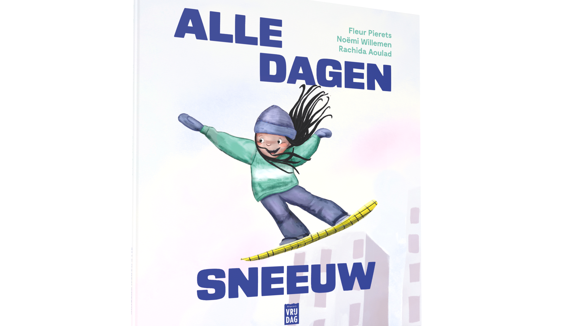 'Alle dagen sneeuw' is het eerste Nederlandstalige prentenboek van Fleur Pierets. De combinatie van Fleurs ijzersterke pen met de sprankelende illustraties van Noëmi Willemen – die al enkele bestsellers illustreerde – zorgt voor vonken. Het prentenboek is gebaseerd op de ervaringen van Rachida Alouad, een professionele freestyle snowboarder.